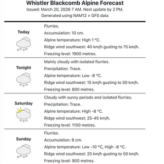 I would say Blackcomb Alpine would be our best bet. Exactly what would be determinant on visibility, access, and surface conditions. A little skiff of new snow would be nice somewhere along the way too! But yes, I understand the plan is a little vague but it will be a day hard to hang your hat on a specific objective.